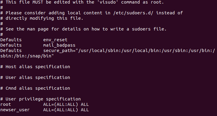 // newser_user 계정에 sudo 권한을 부여한 경우이다.