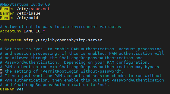 root 권한으로 또는 sudo 권한으로 아래 파일에 Banner 항목을 활성화 시킨다.