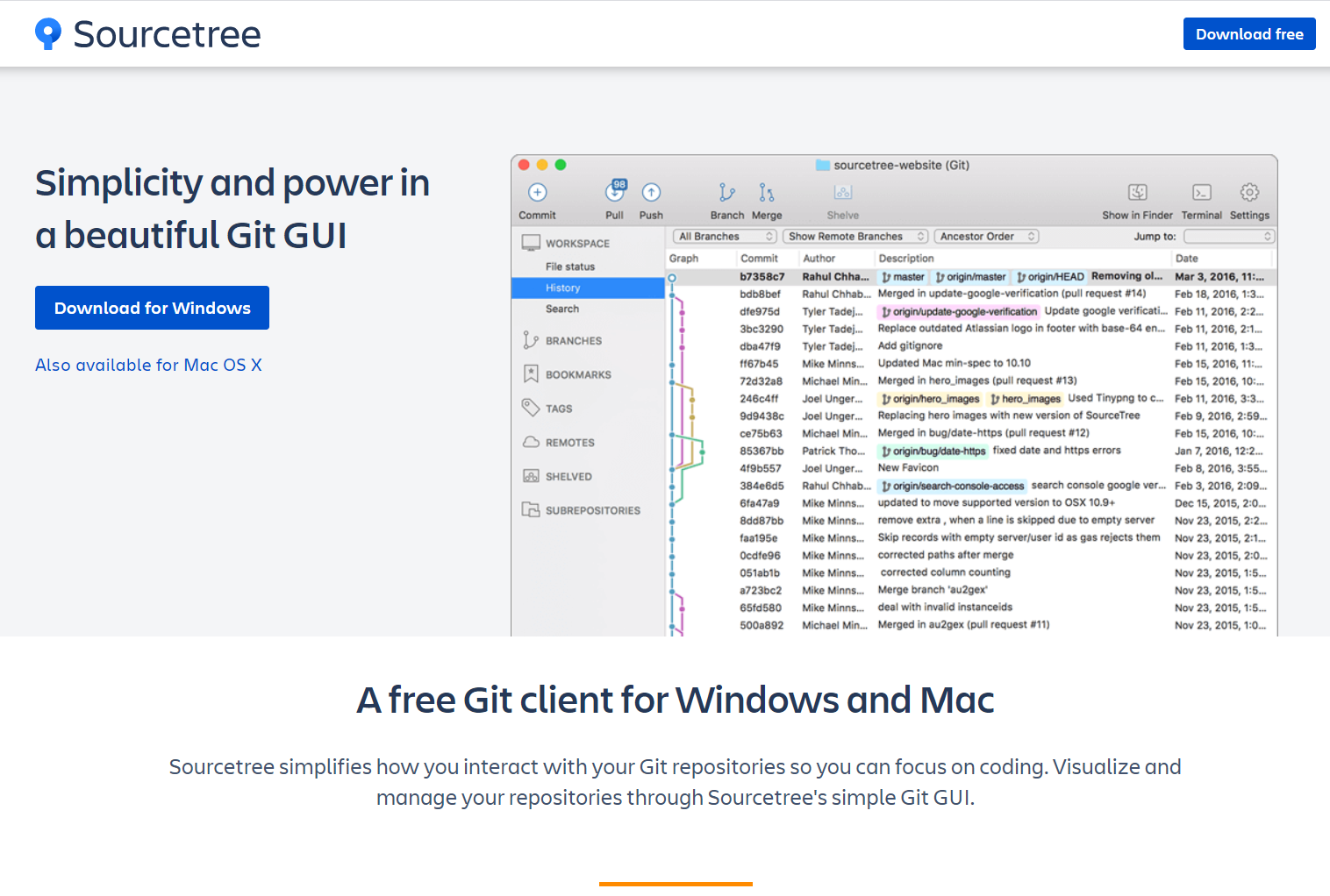 소스트리 사이트에 접속하여 나의 PC 에 맞는 실행파일을 다운로드하여 설치하도록 한다.