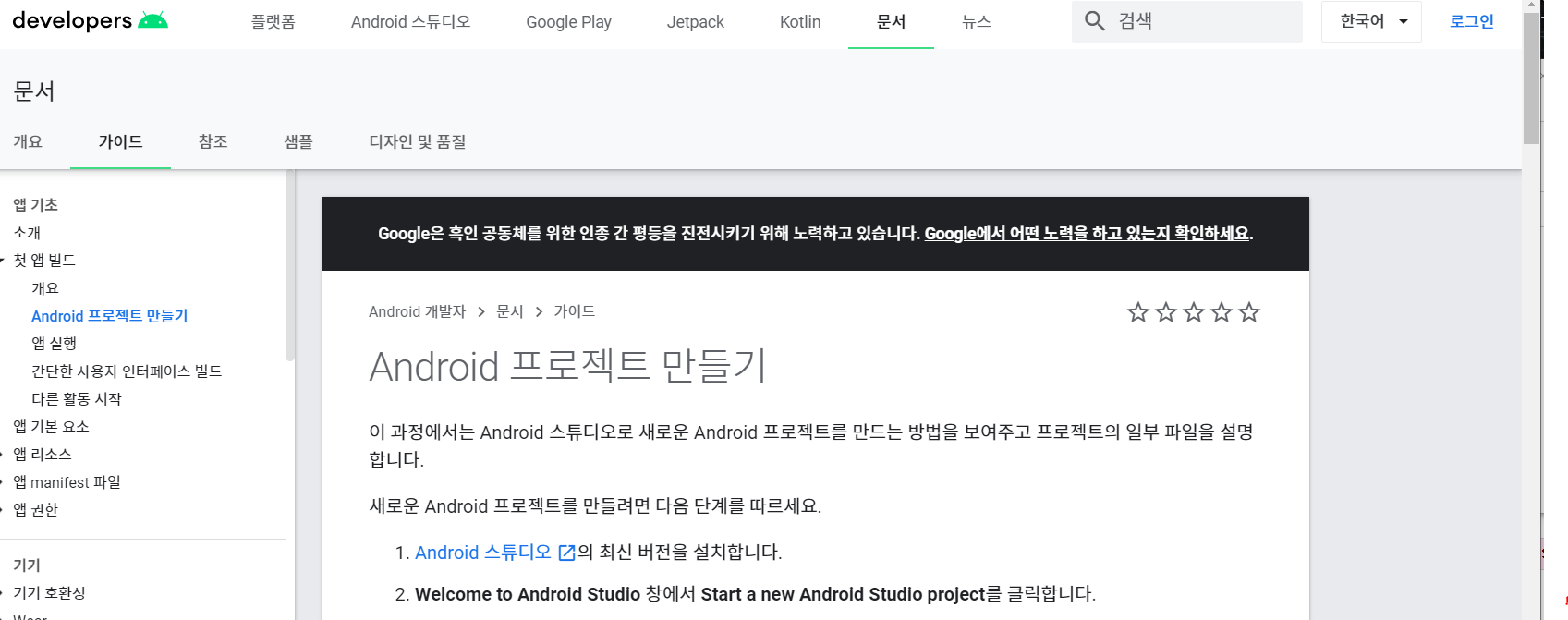 안드로이드 제작자인 구글에서 제공하는 자료를 참고하는 것은 무엇보다 중요하다.