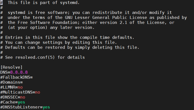 sudo vi /etc/systemd/resolved.conf