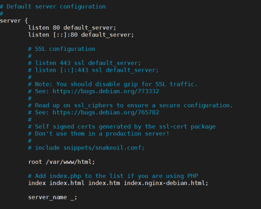 sudo vi /etc/nginx/sites-available/default