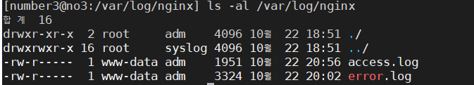 /var/log/nginx 디렉토리에는 nginx. log 가 쌓여있다.